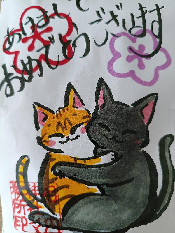 この神社。猫を2匹飼っているそうで、これはその猫ちゃんたちのイラストなんだそう。